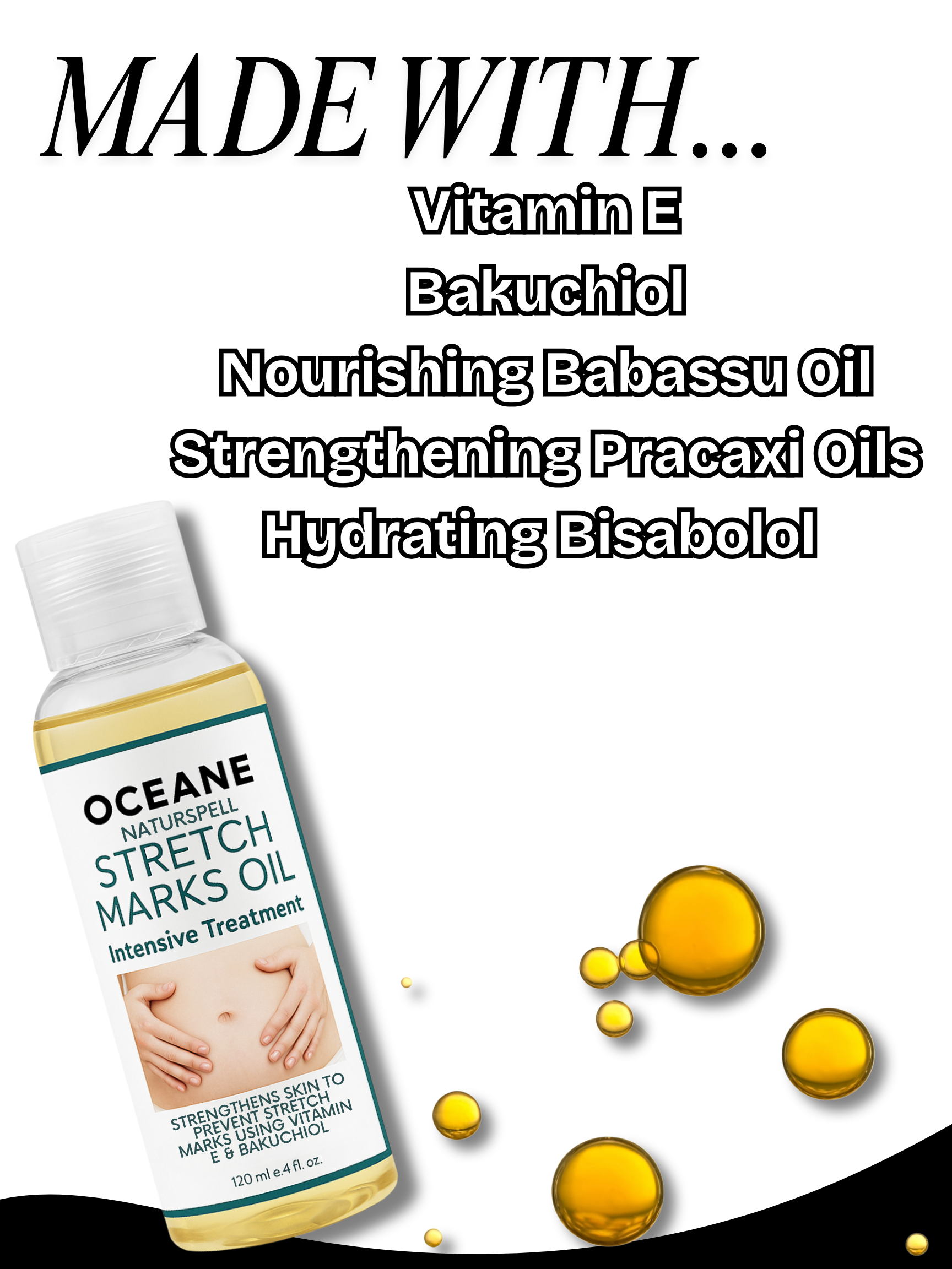 Powered by Vitamin E and Bakuchiol, this fast-absorbing oil nourishes and renews your skin from within. It works to fade stretch marks, enhance firmness, and restore a healthy glow without feeling greasy.